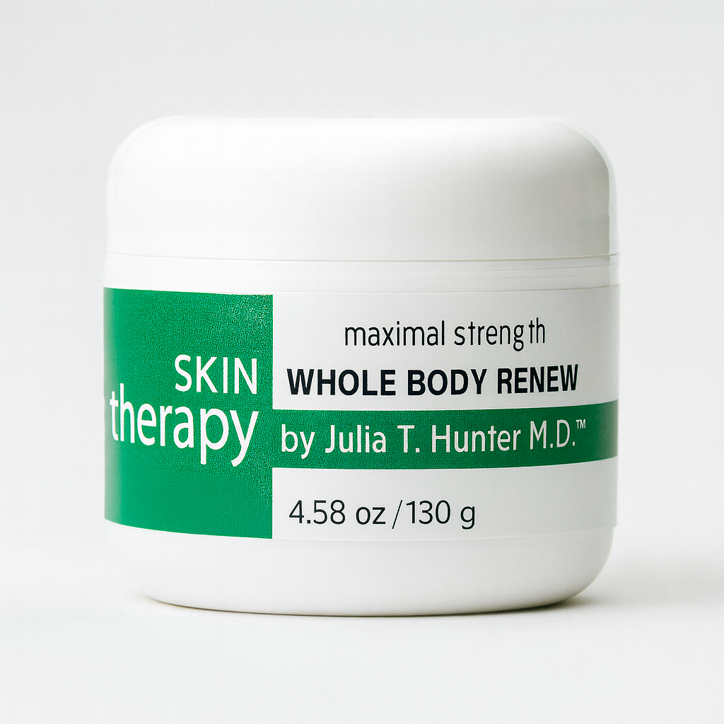 Maximal Strength Whole Body Renew, formulated by Beverly Hills-based functional dermatologist Dr. J.T. Hunter, M.D., is a comprehensive metabolic skin therapy designed to rejuvenate skin from deep within. It features a powerful combination of metabolic, anti-inflammatory, brightening, anti-aging, and healing compounds, along with natural, organic ingredients and gentle exfoliating acids.